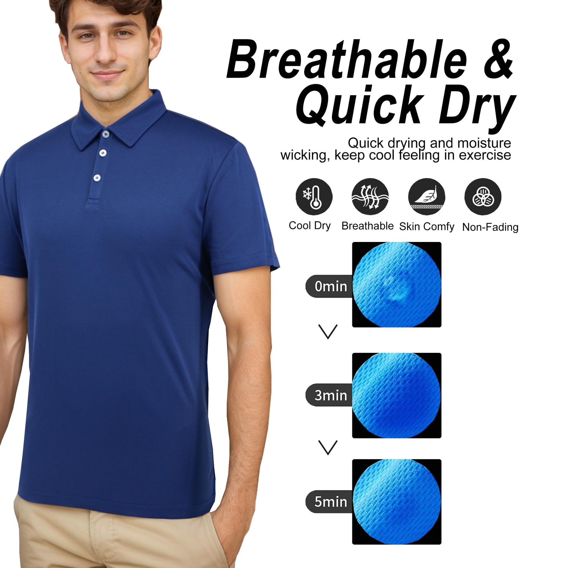 LANBAOSI 3 Pack Mens Polo-Shirts Short Sleeve Slim Fit Shirts Quick Dry Golf Casual Workout Shirts