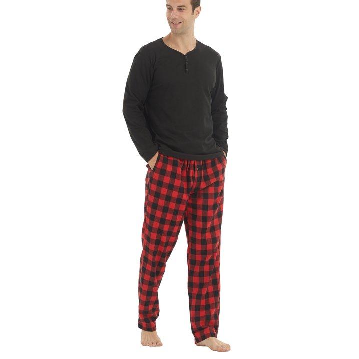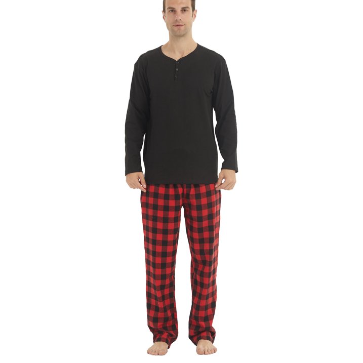 • Relaxed Design: The pajama bottoms feature a drawstring waist for easy relaxation, while the top has a crew neck and henley shirt style.